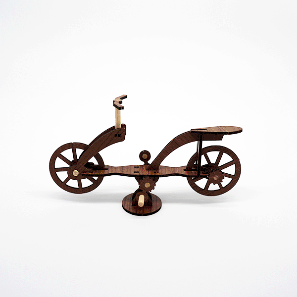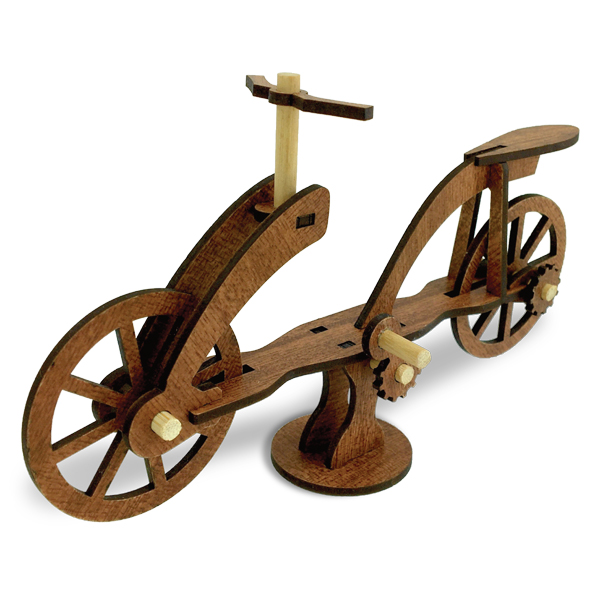 Pathfinders Da Vinci Mini Bicycle Model Kit. Eenvoudig te maken in ongeveer 30 minuten, met voorgesneden hout en klaar om in elkaar te zetten, zijn deze leuke en inspirerende werkende modellen van een van de grootste geesten uit de geschiedenis nu verkrijgbaar in miniatuur!