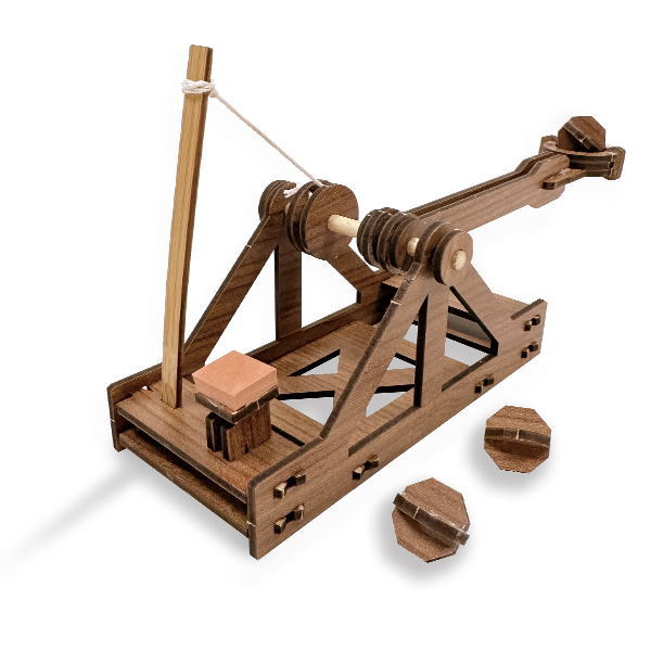 Herbeleef die speelse renaissance-katapulten met een leuke kleine katapult die de basisprincipes van katapulttechnologie laat zien en leer hoe hefboomwerking, middelpuntzoekende en middelpuntvliedende krachten samenwerken voor de perfecte lancering! Dit is speelsheid naar een nieuw niveau getild!